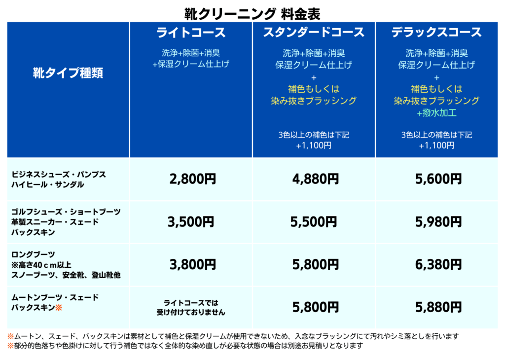 靴クリーニング基本料金表